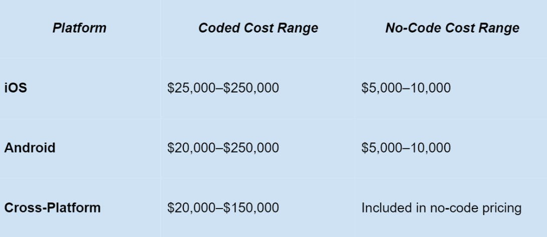 Factors influencing these figures include functionality, platform choice, and team location. No-code platforms significantly reduce both cost and development time while simplifying iteration cycles.