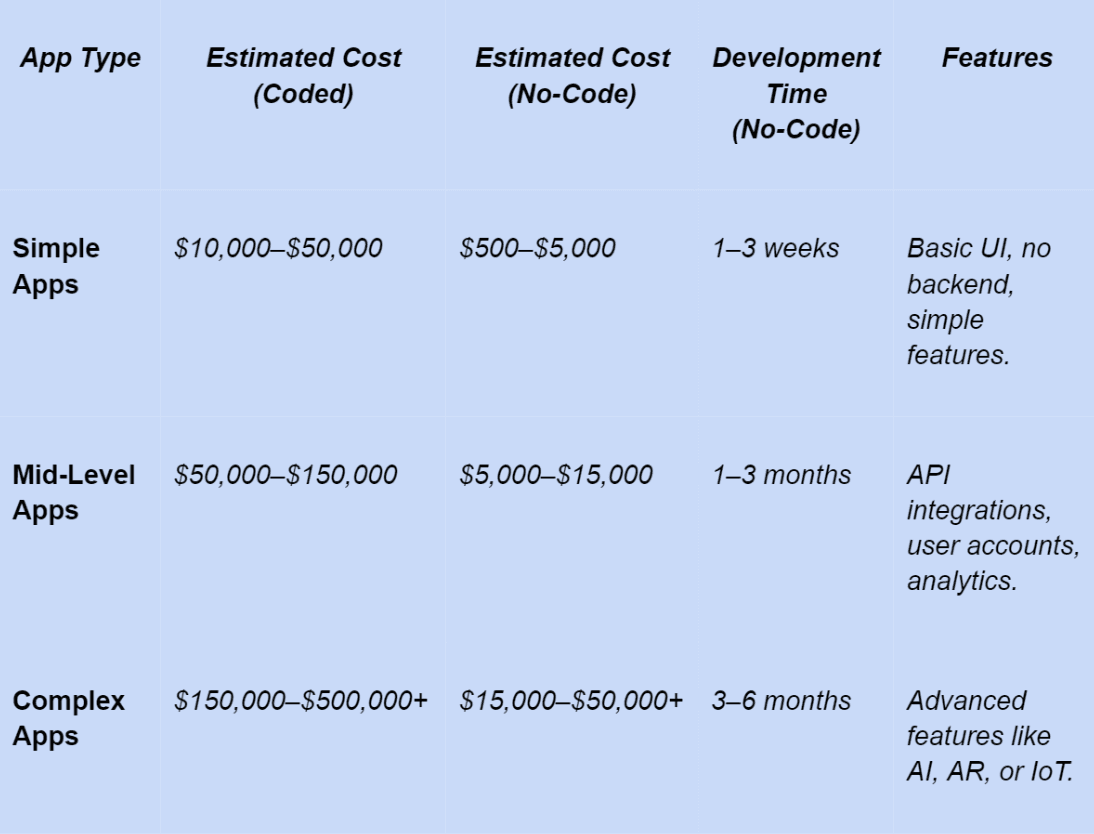 Coded vs. No-Code Cost Comparison