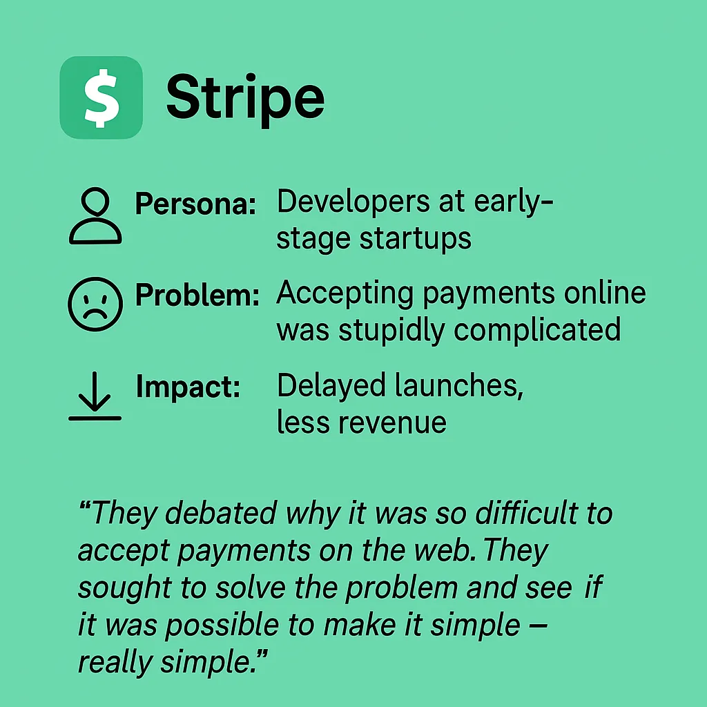 Here are five problem statements that launched unicorns — pulled from early founder interviews, pitch decks, and product pages: