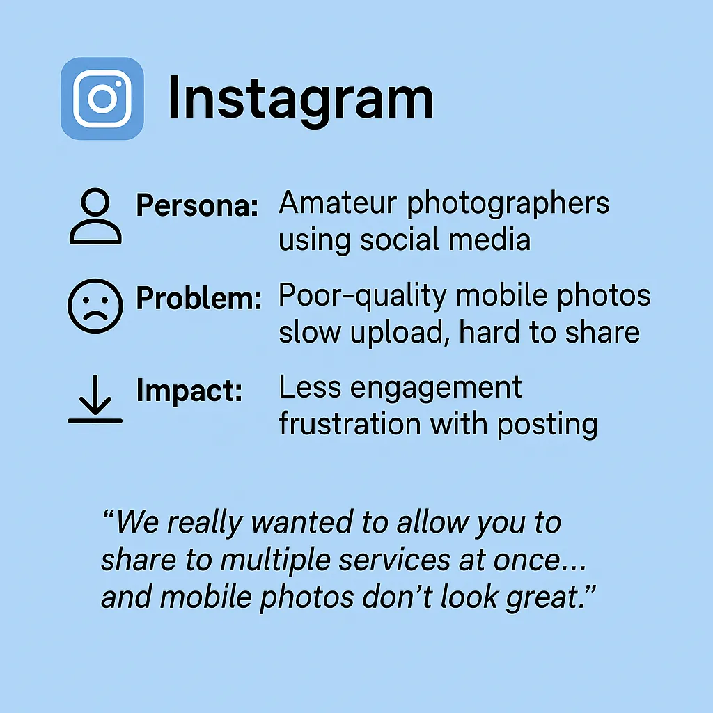 Instagram: “Mobile photos don’t look great, uploads take a long time, and it’s hard to share them with friends.”